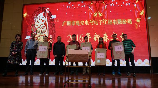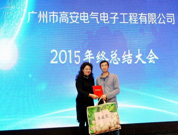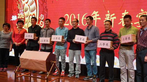 2015年度總結大會暨新春宴會于2016年1月17日在珠江帝景酒店迎囍皇宮舉行。公司各級領導作2015年度工作總結及2016年計劃發(fā)言,倫燕寬董事長向先進團體及個人進行頒獎。